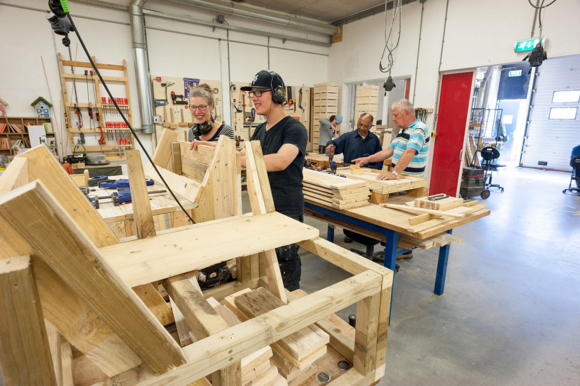 Veel in Hout is een houtwerkplaats waar mensen met een licht verstandelijke beperking of niet aangeboren hersenletsel werken.